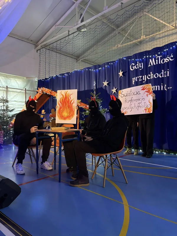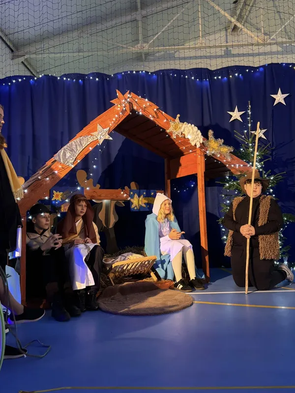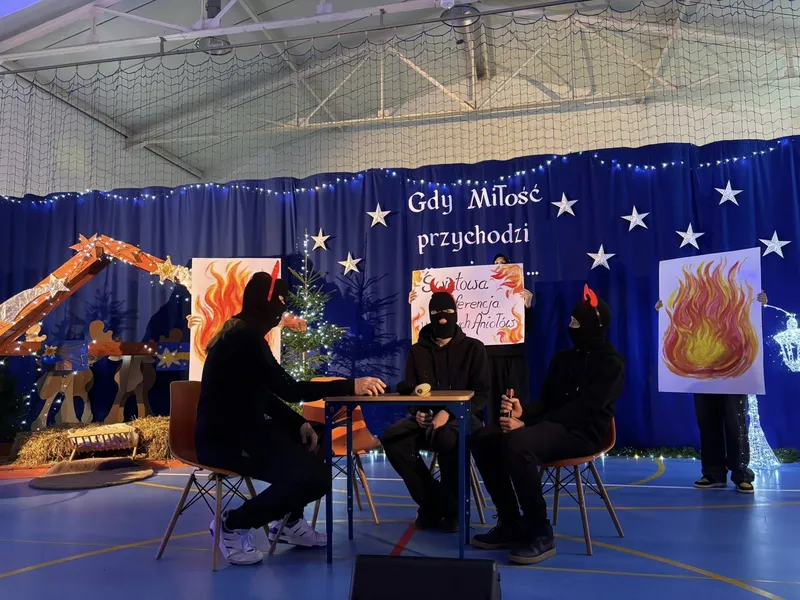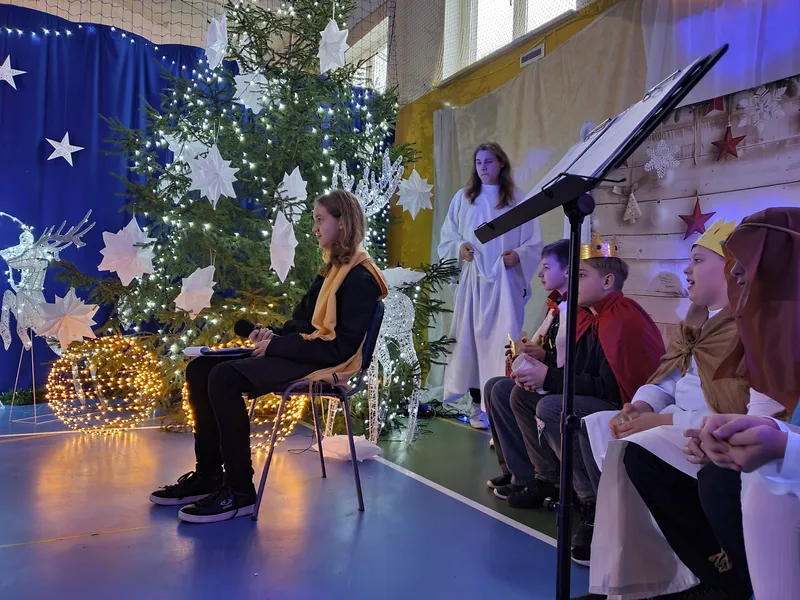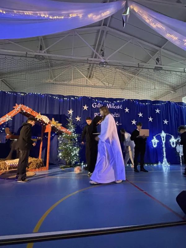 Tegoroczne przedstawienie bożonarodzeniowe nie miało formy tradycyjnych jasełek. Było to niezwykłe widowisko zatytułowane „Jasełka z Małym Księciem”, które połączyło ewangeliczne przesłanie płynące z betlejemskiego żłóbka z ponadczasową mądrością zawartą w słowach „Dobrze widzi się tylko sercem. Najważniejsze jest niewidoczne dla oczu.”. Młodzi aktorzy w bardzo realistyczny i przejmujący sposób ukazali, że w codziennym pośpiechu, troskach i sprawach tego świata często tracimy z oczu to, co najważniejsze. Wszystko może przesłonić nam Boga, a przecież możemy Go odnaleźć tylko sercem. Przedstawienie przypomniało, że Boże Narodzenie jest właśnie po to, aby zatrzymać się, wyciszyć i odnaleźć miłość płynącą z ubogiego żłóbka. Miłość, która nadaje sens naszemu życiu. Nie zabrakło także tradycyjnych postaci bożonarodzeniowych: Maryi, Józefa, pasterzy, aniołów oraz Trzech Króli, którzy przybyli oddać pokłon Jezusowi narodzonemu w ubogiej stajence. Całe przedstawienie przeplatane było pięknymi kolędami i pastorałkami, które wprowadziły wszystkich w świąteczny nastrój.