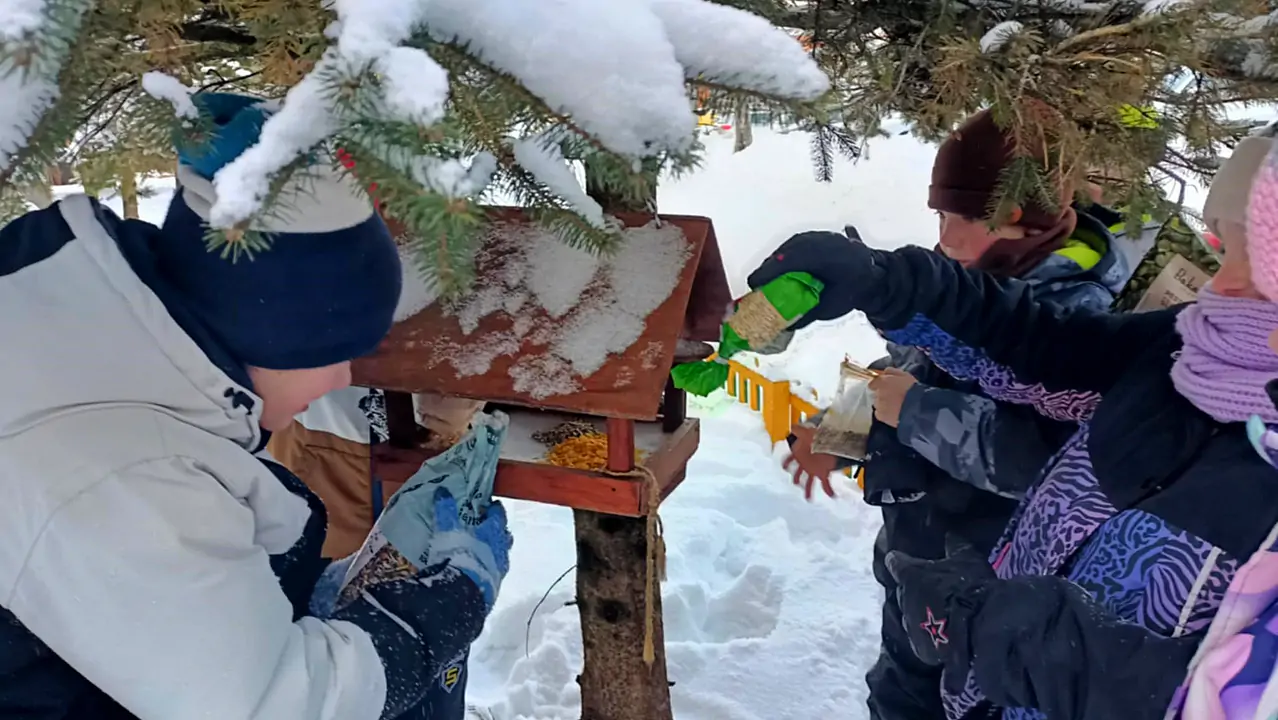 Dzieci pod opieką nauczycieli przynoszą odpowiedni pokarm: ziarna zbóż, słonecznik, kulki tłuszczowe. Dbają o to, aby ptaki miały stały dostęp do pożywienia. Przy okazji uczą się, jak właściwie i odpowiedzialnie pomagać zwierzętom oraz poznają gatunki ptaków zimujących w naszej okolicy, takie jak sikorki, wróble, kosy i gile.