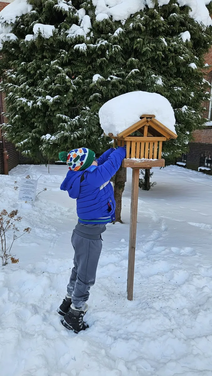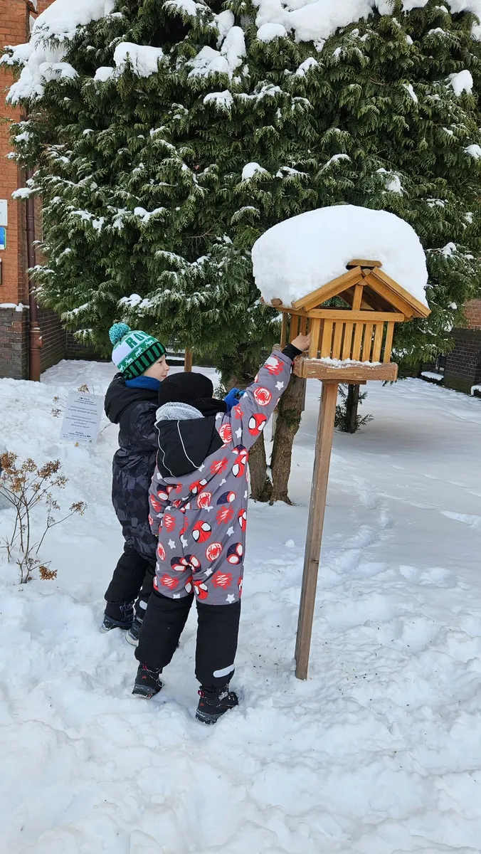 Na terenie przyszkolnym znajduje się wiele karmników, które w okresie zimowym regularnie są uzupełniane przez najmłodszych uczniów.