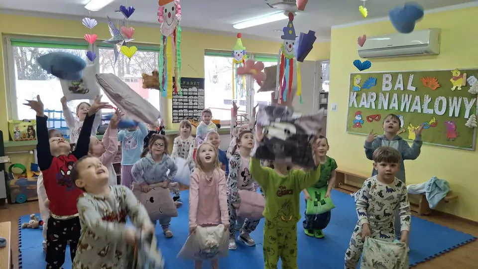 Dziś nasze przedszkolaki chciały w ten sposób okazać wsparcie wszystkim najmłodszym pacjentom i ich rodzinom poprzez zmianę zwykłych ubrań na piżamy. Dzieci zastanawiały się, jak można pomóc chorym dzieciom i co można robić, żeby nie zachorować. Nie zabrakło również wspólnych zabaw, gimnastyki oraz zabaw relaksacyjnych z wykorzystaniem poduszek. Odbył się również piżamowy pokaz mody.