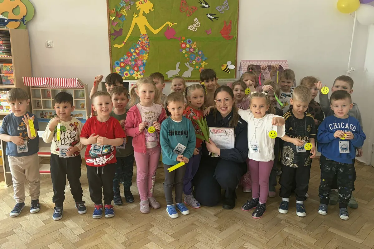 Wizyta odbyła się w ramach tygodnia poświęconego poznawaniu różnych zawodów. Policjantka, która prywatnie jest mamą jednego z uczniów, chętnie przyjęła zaproszenie i opowiedziała dzieciom o swojej służbie. Przybliżyła najmłodszym, na czym polega codzienna praca policjanta. Dzieci dowiedziały się, jakie zadania wykonują funkcjonariusze, w jakich sytuacjach pomagają ludziom oraz jak ważne jest przestrzeganie zasad bezpieczeństwa. Nie zabrakło także ciekawostek oraz opowieści z policyjnej służby, które wzbudziły duże zainteresowanie wśród przedszkolaków.