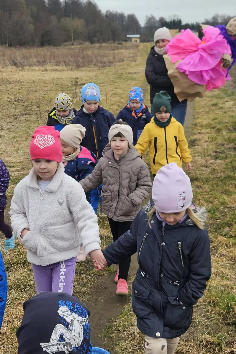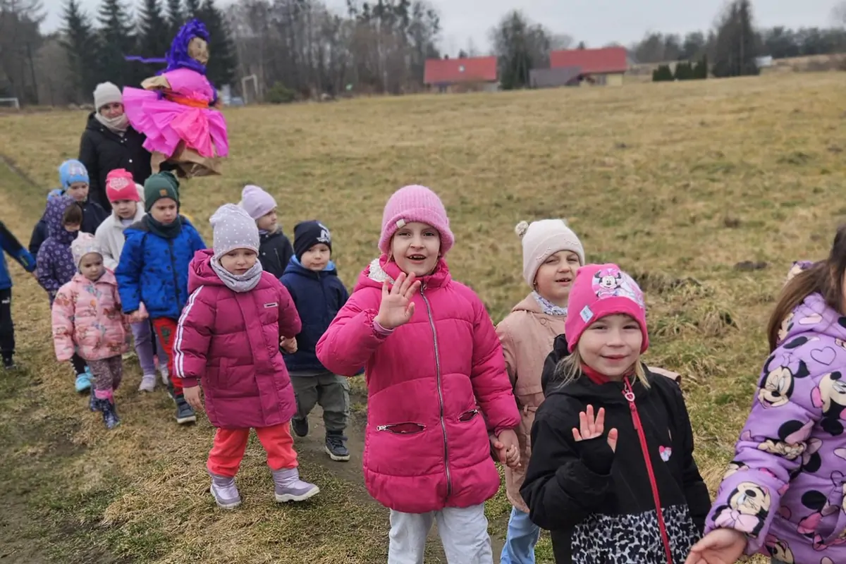 Wspólnie, pełne energii i uśmiechu, wyruszyły na spacer nad rzekę, by symbolicznie zakończyć zimowy czas i powitać nadchodzącą wiosnę. Towarzyszyła im radosna atmosfera oraz wiosenne piosenki, które rozbrzmiewały po w okolicy, niosąc ze sobą ciepło i nadzieję na słoneczne dni. Nie zabrakło również tradycyjnych słów „Marzanno, marzanno, ty zimowa panno, dziś cię utopimy, bo nie chcemy zimy”, które dzieci wypowiadały z wielkim przejęciem. W ten sposób symbolicznie przegoniły zimę, robiąc miejsce dla nowej pory roku.