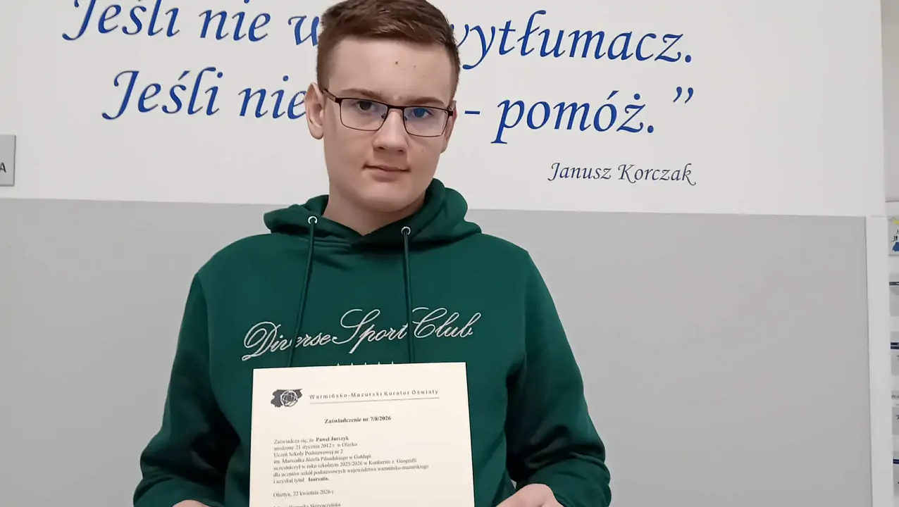 Uczeń klasy 7b Paweł Jurczyk zdobył tytuł laureata w prestiżowym konkursie z geografii, zorganizowanym przez Warmińsko-Mazurskiego Kuratora Oświaty.