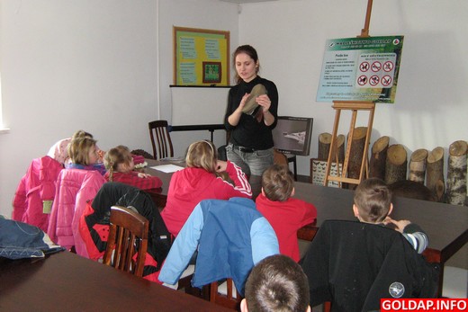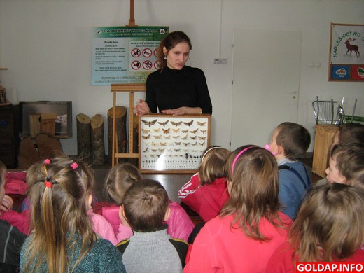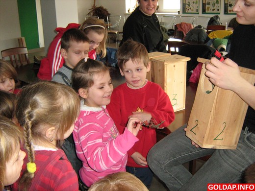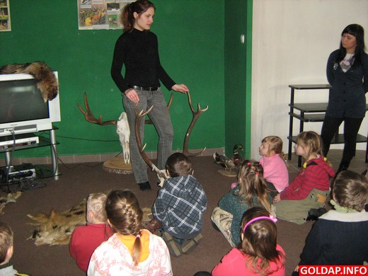 Pani Agnieszka Iber przeprowadziła interesujące zajęcia w izbie edukacyjnej na temat zimy w lesie. Najpierw wspólnie z przedszkolakami sformułowano zasady właściwego zachowania na łonie natury. Dzieci z łatwością odczytywały treści znaków zakazu i na pewno nie będą „grać w lesie na trąbce". Na koniec obejrzały film edukacyjny, który był bardzo dobrym podsumowaniem tematu. Następnie dzieci mogły wysłuchać nagrań odgłosów dzikich zwierząt, a później pobawiły się w odgadywanie leśnych darów. Chłopców szczególnie zainteresowały okazałe poroża jelenia i łosia.