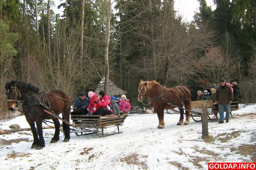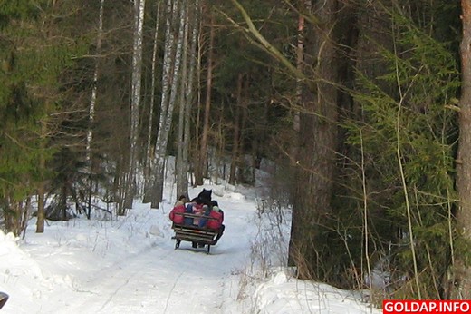 Wspólny wyjazd do Lasu Kumiecie w Gołdapi stał się przede wszystkim okazją do świetnej zabawy i nauki na świeżym powietrzu, ale nie tylko. Na miejscu czekały bowiem na dzieci dwie pary sań zaprzężonych w piękne „rumaki". Taki widok zapowiadał pyszną sannę. Wiele radości sprawiła maluchom przejażdżka leśnymi ścieżkami przy dźwiękach dzwonków. Przedszkolaki mogły jeszcze cieszyć się urokami zimy, która w lesie jest niemal baśniowa. Punktem docelowym kuligu była siedziba Nadleśnictwa Gołdap, w której również czekały na nie atrakcje.