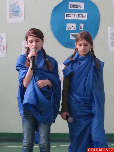 Kiedy się rodzimy, w 80% składamy się z wody. Bez niej nie bylibyśmy w stanie przeżyć. I mimo, że zajmuje ona większą powierzchnię Ziemi, wciąż jeszcze są kraje, w których ludzie umierają z pragnienia. Z tego właśnie powodu 22 marca obchodzimy Światowy Dzień Wody, który jest wspaniałą okazją do uświadomienia dzieciom znaczenia wody w życiu człowieka. Program szkolnych obchodów rozpoczęli uczniowie swobodnymi wypowiedziami, jak ważna jest woda w życiu każdego człowieka. Następnie odbył się Konkurs Recytatorski „Woda wokół nas". Utwory deklamowane przez uczniów nawiązywały do tytułu konkursu. Wszyscy uczestnicy prezentowali swoje umiejętności recytatorskie, kostiumy i rekwizyty przygotowane na tę okazję. Później dzieci wzięły udział w grze symulacyjnej „W poszukiwaniu wody", która wymagała od uczestników sprawności fizycznej, pomysłowości i talentu plastycznego. Uczniowie mieli okazję wcielić się w członków rodzin mieszkających w jednym z krajów Afryki Środkowo-Zachodniej i zdobyć wodę. Młodsze dzieci tworzyły hasła i plakaty zachęcające do ochrony wód naszej planety Ziemi. Wspólnie obejrzeliśmy także film pt. „Strumień. Z miłości do wody". Odbyły się również zabawy i konkursy na powitanie wiosny. Na zakończenie zostały wręczone nagrody przyznane w konkursach i nastąpiło odczytanie hasła dnia - „Woda jest prawem każdego człowieka".