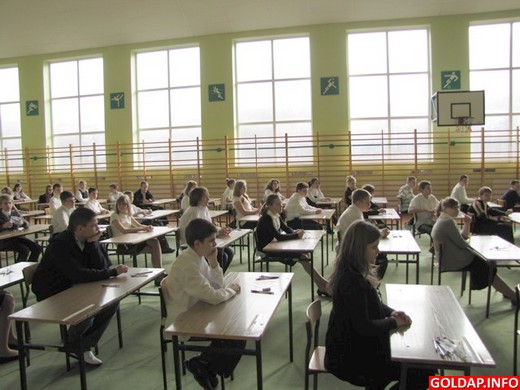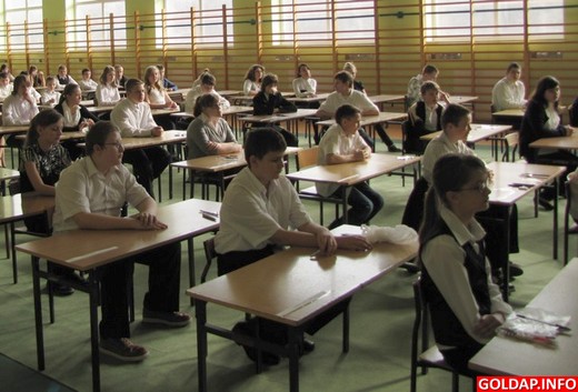 uczniowie z SP1 w Gołdapi pisali egamin w jednej sali