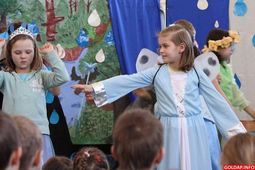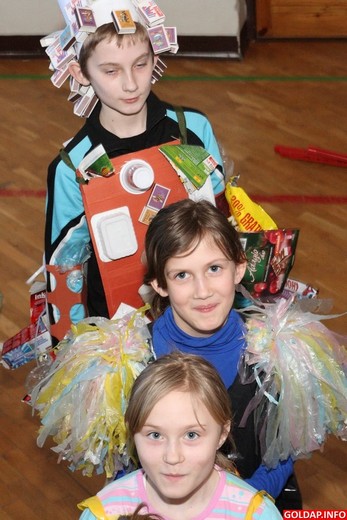 Dziś, drugiego dnia „Zielonych dni w szkole" uczniowie obejrzeli spektakl pt. „Urodziny Wody", przygotowany przez Alinę Oleszczuk i klasę IIa. Podsumowane zostały też konkursy: „Woda wokół nas", „Rosliny na każdym, szkolnym parapecie", „Witaminki" i „Witamy skrzydlatych przyjaciół". Najlepsi otrzymali pamiątkowe dyplomy. Odbyła się również IX edycja szkolnego konkursu „Modny strój - wyczarowane z odpadów". Polega on na przygotowaniu najładniejszego ubioru z odpadów, np. folii, butelek, papierków itd. Tytuł I „Papierowej Damy" zdobyła Olga Grudzińska. Drugie miejsce zajęła Maja Grudzińska, a trzecie Magdalena Augustynowicz. Pierwszym Papierowym Kawalerem został Mateusz Piwowar, drugie miejsce przypadło Marcinowi Jurewiczowi, a trzecie Kacprowi Taudulowi. Stroje oceniało jury złożone z: Anny Naruszewicz (Park Krajobrazowy Puszczy Rominckiej), Andrzeja Wyłuckiego (Nadleśnictwo Gołdap), Ewy Bolewskiej i Elżbiety Kudosz (Państwowa Stacja Sanitarno-Epidemiologiczna).