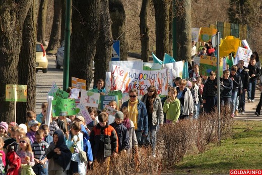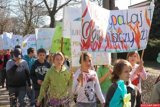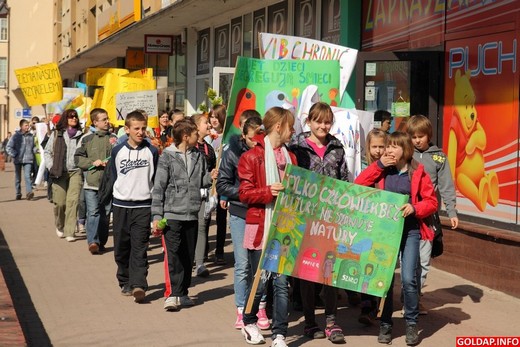 „Nie zaśmiecaj ziemi", „SP2 o przyrodę dba", „Nawet dzieci segregują śmieci" - takie i inne hasła widniały na transparentach, z którymi dzieci ze Szkoły Podstawowej nr 2 w Gołdapi przemaszerowały dziś ulicami miasta.