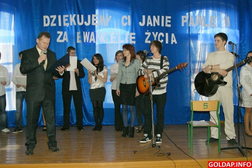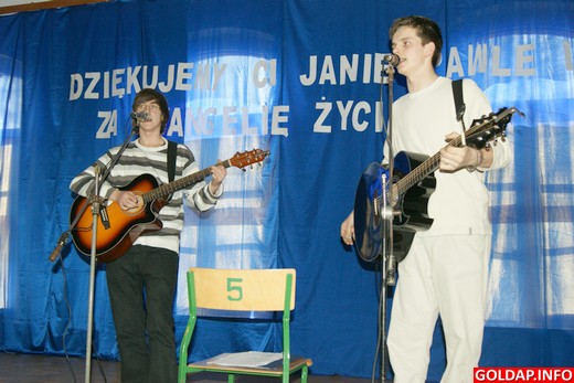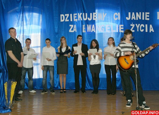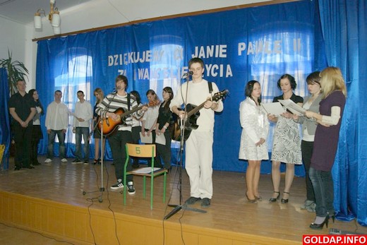 Do beatyfikacji Jana Pawła II zostało kilka dni. Młodzież z Zespołu Szkół Zawodowych w Gołdapi 14 kwietnia przedstawiła program słowno-muzyczny pt. „Dziękujemy ci Janie Pawle II za ewangelię życia". Celem spotkania było uczczenie pamięci papieża Polaka, przypomnienie jego słów, działalności oraz przedstawienie sylwetek osób wyniesionych przez niego na ołtarze.