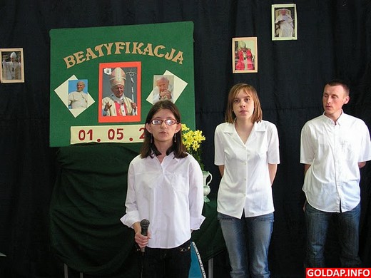 "To tutaj, w Wadowicach wszystko się zaczęło..." - tymi słowami rozpoczął się uroczysty apel w Ośrodku Szkolno-Wychowawczym w Gołdapi poświęcony Janowi Pawłowi II. Uczniowie przypomnieli życiorys Karola Wojtyły oraz zaprezentowali utwory Magdy Anioł z płyty "Lolek".