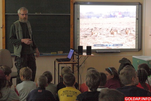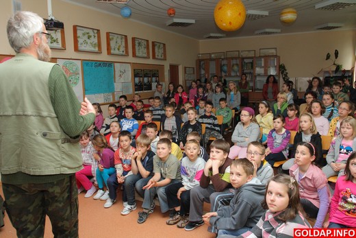 - To przyrodnik i fotograf przyrody, a jednocześnie leśniczy w Biebrzańskim Parku Narodowym - mówi Iwona Malinowska-Januszkiewicz, nauczycielka przyrody i koordynatorka spotkań w Gołdapi. - Zaprezentował on dzieciom filmy związane z parkiem, opowiedział o roślinach i zwierzętach tam występujących, o swoich pasjach.