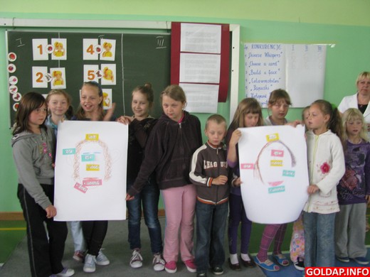 Biorąc udział w wielu ciekawych zabawach i konkurencjach dzieci sprawdziły swoją wiedzę z zakresu słownictwa i prostych konstrukcji gramatycznych. Okazało się, że większość z nich spisała się na medal! Uczestnikom szczególnie podobała się konkurencja „Build a face", podczas której mogli narysować twarz, zgodnie z instrukcjami w języku angielskim. Następnie opisali konkretne części twarzy odpowiednimi kartonikami. Grupa uczniów z każdej klasy przygotowała także krótką część artystyczną w języku angielskim w postaci teatrzyku, wiersza lub piosenki. Na zakończenie imprezy uczniowie otrzymali pamiątkowe dyplomy i drobne upominki.