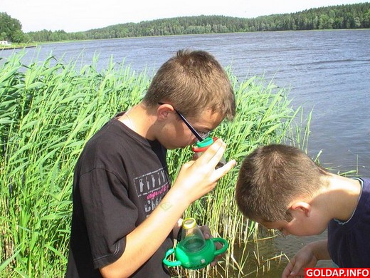 W następnej części zajęć badaliśmy czystość naszego jeziora, m.in. na obecność fosforanów, azotanów i innych związków chemicznych oraz określaliśmy pH wody. I tu mamy dobrą wiadomość: nasze jezioro jest czyste! Latem śmiało możemy korzystać z jego uroków. Zadowoleni z wyników badań udaliśmy się na poszukiwanie organizmów żywych zamieszkujących nasze jezioro. Udało się nam złowić kilka ciekawych okazów, które mogliśmy obejrzeć pod mikroskopem stereoskopowym. Niektóre z nich, pomimo że znane są z lekcji przyrody to „ na żywo" wyglądają nieco inaczej. Zajęcia dostarczyły nam wielu nowych doświadczeń, pozwalając na obserwację przyrody w niecodzienny sposób. Niech więc naszemu codziennemu życiu przyświeca myśl Alberta Einsteina „Wpatrz się głęboko, głęboko w przyrodę, a wtedy wszystko lepiej zrozumiesz".