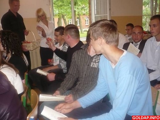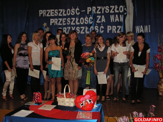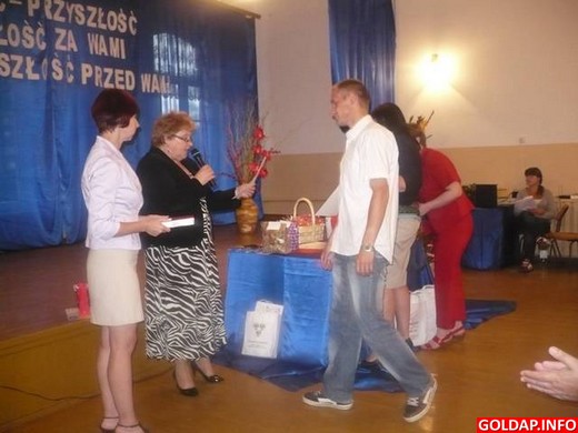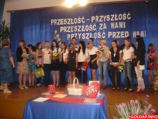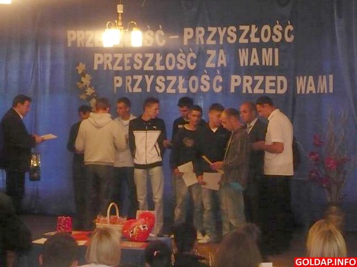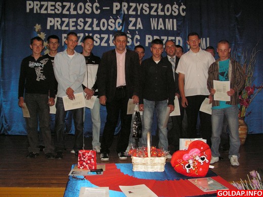W sali gimnastycznej Zespołu Szkół Zawodowych w Gołdapi odbyło się dziś zakończenie roku szkolnego klas trzecich i drugich kończących cykl kształcenia zasadniczej szkoły zawodowej. Na uroczystość przybyli m.in. główny specjalista ds. edukacji w Starostwie Powiatowym Dorota Beata Grudnik-Cemborek, ks. Czesław Król, przewodniczący Rady Rodziców Mirosław Pawelski oraz wielu innych gości. Zakończenie uświetnił występ przygotowany przez uczniów klas 1km i 2lus, nad którym pieczę sprawowała Helena Barbara Styczyńska.