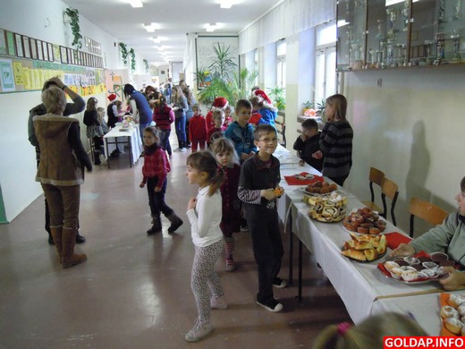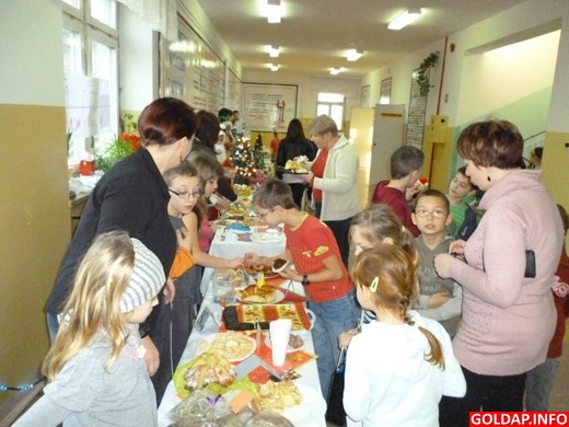 W piątek, 16 grudnia w Szkole Podstawowej nr 2 w Gołdapi odbył się świąteczny kiermasz. Już od rana widać było wielkie poruszenie! Każdy coś nosił, ustawiał, ozdabiał. Wszyscy bardzo się starali. Tak powstawały stoiska klasowe. Gdy wszystko było już dopięte na ostatni guzik, dyrektor Stefan Piech oficjalnie ogłosił otwarcie kiermaszu. Na to tylko wszyscy czekali. Stoiska szybko zostały przesłonięte przez kupujących. Każdy chciał kupić sobie coś szczególnego. A było w czym wybierać! Ciasta, ciasteczka, babeczki, a także tosty. Nawet najbardziej wybredny łasuch znalazł coś dla siebie. Były też najróżniejsze ozdoby choinkowe, stroiki, kartki świąteczne. Na stoiskach znalazły się również książeczki i pluszaki. Wokół widać było uśmiechnięte twarze. Wszyscy dobrze się bawili. Po kiermaszu pozostały już tylko wspomnienia, ale myślę, że niektórzy już zastanawiają się, co przygotują w przyszłym roku. :) Dziękujemy wszystkim rodzicom, nauczycielom i uczniom, którzy zaangażowali się w przygotowanie kiermaszu. Życzymy wszystkim radosnych, pogodnych i szczęśliwych Świąt Bożego Narodzenia.