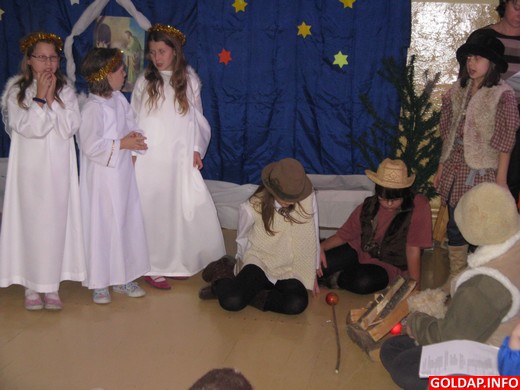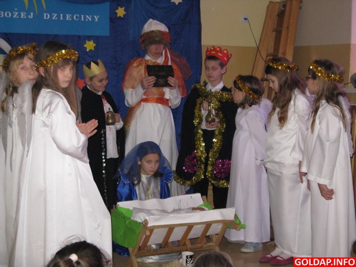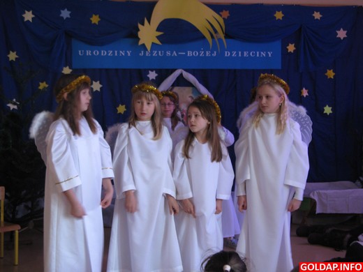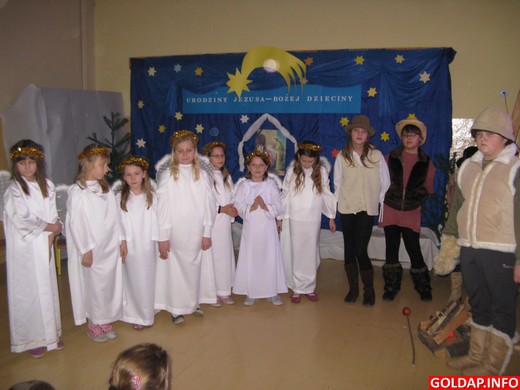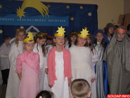 Dziś w Szkole Podstawowej w Jabłońskich miało miejsce tradycyjne dzielenie sie opłatkiem. Na tę wyjątkową chwilę dyrektor szkoły Aleksandra Retel zaprosiła ks. proboszcza Czesława Króla, wszystkich nauczycieli, uczniów i ich rodziców. Na początku w miłych i serdecznych słowach powitała przybyłych gości. Następnie mali, wspaniali aktorzy, uczniowie klas II-VI pod opieką Heleny Mackiewicz i Edyty Izbickiej zaprezentowali montaż słowno-muzyczny pt."Urodziny Jezusa - Bożej Dzieciny". Pięknie recytowane teksty i śpiewane kolędy zachwyciły publiczność i wzruszyły przesłaniem płynącym z inscenizacji. Po obejrzeniu spektaklu w atmosferze wzajemnej życzliwości dzieliliśmy się opłatkiem składając sobie nawzajem życzenia radosnych i błogosławionych świąt.