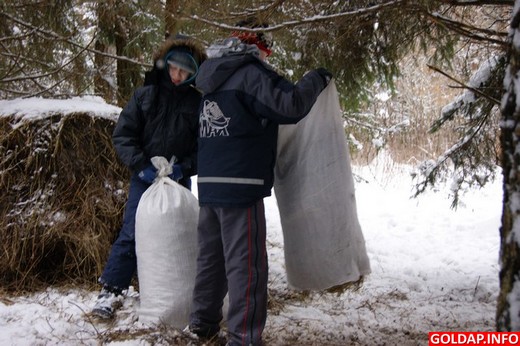 Wczoraj klasy Va i Vc wraz z wychowawczyniami udały się do Puszczy Rominckiej, aby wywieźć to wszystko na karmowisko. Później w nagrodę za zorganizowaną zbiórkę myśliwi z Koła Łowieckiego „Granica" zaprosili dzieci na ognisko i kulig po ośnieżonej Puszczy Rominckiej.