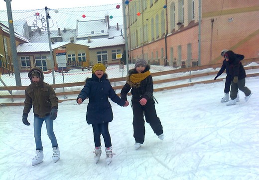 17 lutego w ramach zajęć wychowania fizycznego wybraliśmy sie na łyżwy. Na początek mieliśmy rozgrzewkę. Później dobraliśmy się w grupy i zrobiliśmy wyścigi. W pierwszej grupie wygrała Julia Czapla, w drugiej Krzysztof Maljonis, a w trzeciej Beata Augustynowicz. Zrobiliśmy także wyścig finałowy, w którym wygrał Krzysztof Maljonis, nastepnie do mety dotarły Beata Augustynowicz i Julia Czapla (remis). Po wyścigach był ciepły napój i dalej bawiliśmy się w "Kota". Na pożegnanie lodowiska zabawiliśmy się w "Małego osiołka". W powrocie do szkoły śpiewaliśmy piosenki. Było bardzo fajnie.