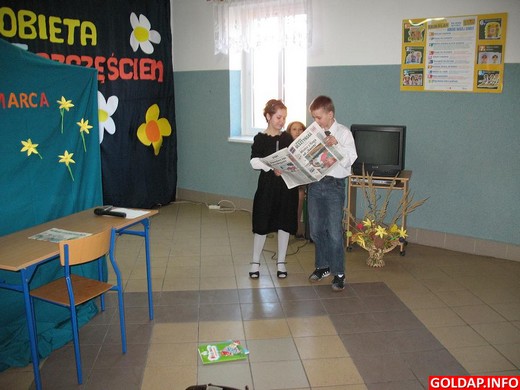 „Panowie, dość! Chłopaki, stop! Teraz róbcie sami bukiety: z ukłonów, z uśmiechów i z przyjemności" - to hasło, pod którym rozpoczęły się obchody Dnia Kobiet w Ośrodku Szkolno-Wychowawczym w Gołdapi. Tym razem uczniowie postanowili uczcić to święto na wesoło. Chłopcy odśpiewali paniom i koleżankom piosenkę, uczennica z gimnazjum wcieliła się w niezadowoloną z życia żonę wygłaszając monolog pt. „Co ja w tobie widziałam?", zaś uczniowie klas najmłodszych przedstawili inscenizację piosenki" Ech mała". Na zakończenie panie i uczennice otrzymały kwiaty. Impreza bardzo się wszystkim podobała, świadczyły o tym śmiechy i liczne brawa w czasie występu.
