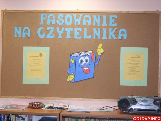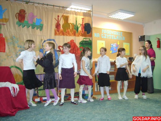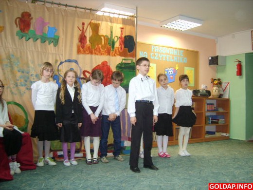 Do biblioteki szkolnej przyszli uczniowie klas pierwszych wraz z wychowawczyniami, by obejrzeć przedstawienie przygotowane przez dzieci na zajęciach świetlicowych pod okiem M. Zadrogi i J. Kołodziej. Głównymi celami inscenizacji oraz pogadanki przeprowadzonej przez bibliotekarkę A. Karniłowicz były: przygotowanie uczniów do samodzielnego czytania, swobodnego korzystania z księgozbioru zgromadzonego w bibliotece, ustalenie najważniejszych zasad korzystania z biblioteki i poszanowania książek oraz obowiązków czytelnika. Centralnym punktem spotkania było ślubowanie, podczas którego najmłodsi uczniowie złożyli przyrzeczenie książce. Pierwszoklasiści wysłuchali „próśb książki" związanych z jej używaniem, a także nauczyli się układu tanecznego do śpiewanego utworu Jana Brzechwy „Na wyspach Bergamutach". Finałem uroczystej lekcji było samodzielne wypożyczenie przez świeżo upieczonych czytelników wybranej książki. Uczniowie otrzymali także pamiątkowe dyplomy i zakładki do książek.