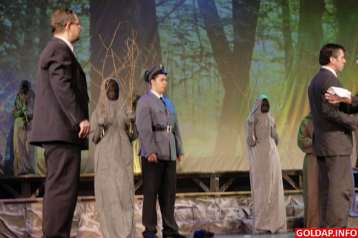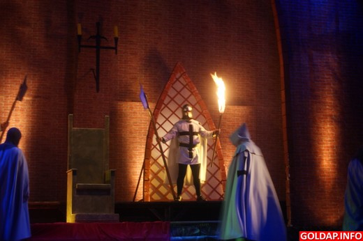 16 marca dwie klasy piąte ze Szkoły Podstawowej nr 3 w Gołdapi pod opieką wychowawczyń udały się do Ełku na spektakl pt. „Skarb Jaćwingów". Organizatorem głównym spektaklu jest Urząd Miasta Ełku, a współorganizatorem Ełckie Centrum Kultury To nie jest zwykłe przedstawienie, to wspaniałe widowisko pełne ognia, fajerwerków, pokazów akrobatycznych i do tego z filmem na wielkim ekranie! Scenariusz napisał Zbigniew Czalej, a grupa młodych aktorów pracowała przez długie miesiące pod okiem reżysera Piotra Kowalewskiego. Pomysł na realizację przedsięwzięcia zaczerpnięty został z dwóch źródeł. Pierwsze to dzieje miasta Ełku, a drugie to współczesna historia dwóch braci, którzy nie wiedząc o swoim istnieniu, dzięki wydarzeniom w mieście, odnajdują się po wielu latach i szczęśliwie odnawiają swoje rodzinne relacje. Takiego spektaklu w Ełku jeszcze nie było. Przedstawienie na żywo z efektami specjalnymi łączy różne formy wyrazu - tradycyjna gra aktorska momentami była uzupełniania filmami. Filmy, jedne na tle zabytkowych budynków miasta, a występujący w nim aktorzy przebrani byli w szykowne stroje z epoki, inne to pełne dynamizmu sceny batalistyczne. Krótkie, ale bogate w treść sceny, są atrakcyjne zarówno w sferze dialogu, jaki w tej wizualnej, bo historia wcale nie musi być nudna, a odpowiednio przedstawiona z pewnością zapadnie głęboko w pamięć. To świetna lekcja dziejów miasta. Naprawdę warto zobaczyć, co ełccy twórcy potrafią przygotować. Takiego spektaklu nie powstydziłoby się żadne wielkie miasto.