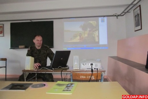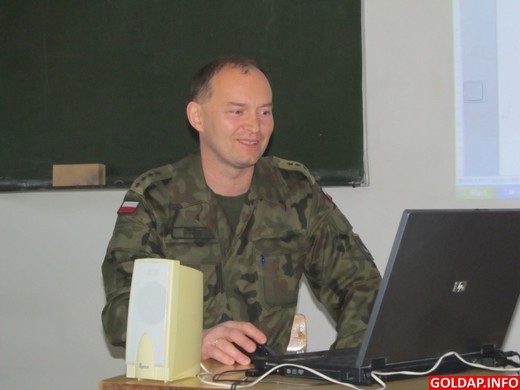 Klasa IIa w Liceum Ogólnokształcącym im. Jana Pawła II w Gołdapi gościła dziś na jednej z lekcji Stanisława Miernika - przewodniczącego gołdapskiego koła Związku Żołnierzy Wojska Polskiego i kpt. Artura Gołąbka z 15 Gołdapskiego Pułku Przeciwlotniczego. Zajęcia były poświęcone rekrutacji do służby wojskowej. Kapitan szczegółowo omawiał etapy kształcenia zawodowych żołnierzy korpusu podoficerskiego i oficerskiego. Lekcja tego typu przeprowadzona będzie we wszystkich klasach drugich LO.