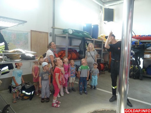Wczoraj grupa 3-4-latków z Grabowa miała zaszczyt odwiedzić Komendę Powiatową Państwowej Straży Pożarnej w Gołdapi. Panowie strażacy z serdecznością i troskliwością przyjęli swoich "małych gości". Przedszkolaki chętnie i z dużym zainteresowaniem oglądały sprzęt, przymierzały hełmy i niektóre elementy stroju.