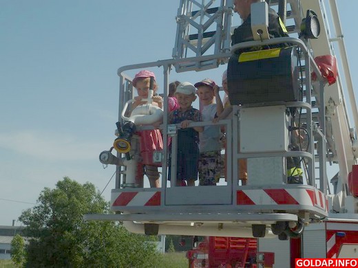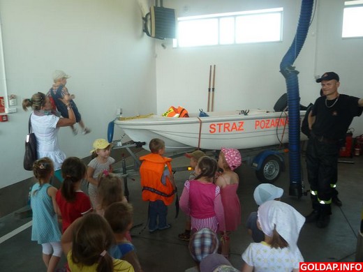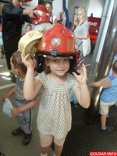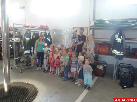 Wczoraj grupa 3-4-latków z Grabowa miała zaszczyt odwiedzić Komendę Powiatową Państwowej Straży Pożarnej w Gołdapi. Panowie strażacy z serdecznością i troskliwością przyjęli swoich ,,małych gości". Przedszkolaki chętnie i z dużym zainteresowaniem oglądały sprzęt, przymierzały hełmy i niektóre elementy stroju. Z u śmiechem na ustach miały możliwość zasiąść w wozach strażackich, zaś największą atrakcją była podróż w koszu podnośnika na niewielkiej wysokości. Na zakończenie wizyty 3-4-latki wręczyły strażakom własnoręcznie wykonaną laurkę oraz kwiaty, serdecznie podziękowały też za miłe przyjęcie i niezapomniane chwile.