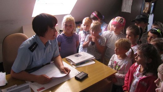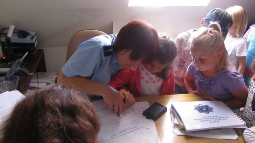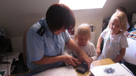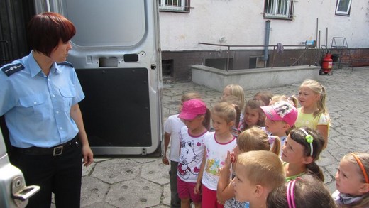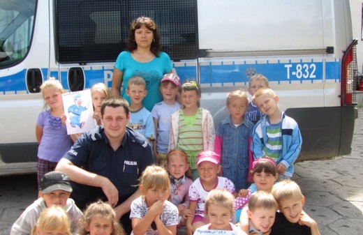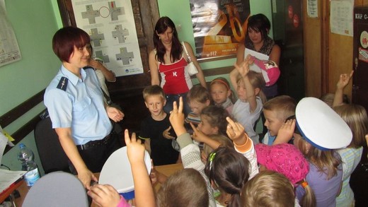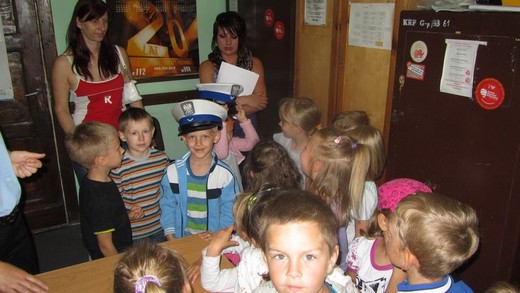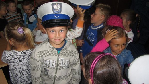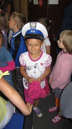 Dziś pięciolatki „ A" ze Szkoły Podstawowej nr 3 odwiedziły Komendę Powiatową Policji. Asp. Marta Andruczyk oprowadziła dzieci po komendzie. Przedszkolaki miały okazję przyjrzeć się codziennej pracy policjanta i obejrzeć sprzęt, którym dysponują funkcjonariusze. Dzieci mogły przymierzać czapki i kajdanki. Duże wrażenie zrobiło pobieranie śladów linii papilarnych, które maluchy zabrały później do domu. Na koniec wycieczki zrobiliśmy pamiątkowe zdjęcia oraz podziękowaliśmy za spotkanie, wręczając obrazki przygotowane przez dzieci. Wizyta była pełna wrażeń i bardzo się maluchom podobała.