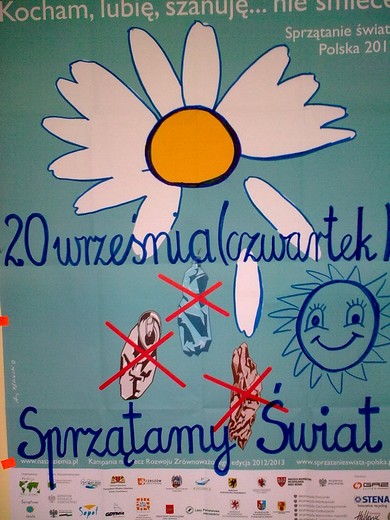 Choć każdego roku świat jest sprzątany, choć prawie każdy zapytany deklaruje, że dba o czystość Ziemi, to każdego roku i tak wszędzie dokoła jest mnóstwo śmieci. W całej Polsce w trzeci weekend września odbywa się akcja pn. "Sprzątanie Świata". Hasłem tegorocznej, dziewiętnastej już jest "Kocham, lubię, szanuję... nie śmiecę". Nawiązujące do ludowej wyliczanki, zachęca wszystkich do refleksji nad stosunkiem do otaczającego świata.