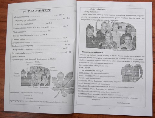 „Szkolny głosik" to tytuł gazetki szkolnej, jaka powstała w Szkole Podstawowej w Galwieciach. Pierwszy numer ukazał się 25 września, a w nim m.in. informacje z życia szkoły, ciekawostki, życzenia, krzyżówka, kolorowanka czy konkurs plastyczny pt. „Mój nauczyciel".