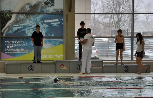 Dwa razy pierwsze miejsce zdobyli Klaudia Suchocka (na dystansach 50m stylem motylkowym oraz 50m stylem klasycznym) oraz Michał Sienkiewicz (50m stylem dowolnym oraz grzbietowym). Pierwsze miejsce zajął także Dawid Sobolewski wygrywając rywalizację na dystansie 50m stylem dowolnym. Dwukrotnie na miejscu drugim rywalizację ukończył Mateusz Tramp (50m stylem dowolnym oraz grzbietowym). Trzecie miejsca wywalczyli: Kamil Tyszlak (50m stylem grzbietowym) oraz Marcin Przyborowski (50m stylem klasycznym). Bardzo dobre, 4 miejsce na 50m stylem klasycznym zajął najmłodszy zawodnik MUKS Piorun Gołdap Kacper Taudul. Rywalizował na tym dystansie z zawodnikami starszymi od siebie. Czwarte miejsca ponadto zajęli: Dawid Sobolewski (50m grzbietowym) oraz Miłosz Januszkiewicz (50m dowolnym).