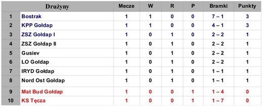 tabela po pierwszej kolejce "Halowej Ligi BGŻ"