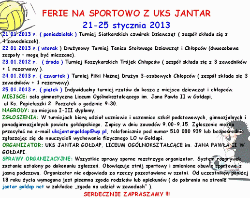 24 stycznia w Kalinowie, w ramach 34 finału Wielkiej Orkiestry Świątecznej Pomocy odbył się turniej tenisa stołowego. Bardzo dobrze zaprezentowali się zawodnicy UKS Gołdap Zdrój.