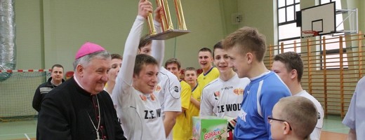 GOŁDAP. XIII Turniej Piłkarski Lektorów o Puchar Biskupa Ełckiego Jerzego Mazura odbył się dziś w hali kompleksu Sportowo-Rekreacyjnego w Gołdapi. Zorganizowała go Gołdapska Rada Sportu. Zagrało 9 zespołów. Najpierw zostały one podzielone na 3 grupy, w których rywalizowano systemem każdy z każdym. Następnie tym samym systemem zagrali zwycięzcy grup. Puchar biskupa trafił do ministrantów z parafii Najświętszej Maryi Panny Matki Kościoła w Gołdapi. Drugie miejsce zajęła drużyna z parafii Chrystusa Sługi w Ełku, trzecie z parafii św. Stanisława Biskupa i Męczennika w Szczecinkach. Jak zauważył Andrzej Sokołowski, to historyczny sukces gołdapskich ministrantów. W poprzednich edycjach turnieju zajmowali oni odległe miejsca.