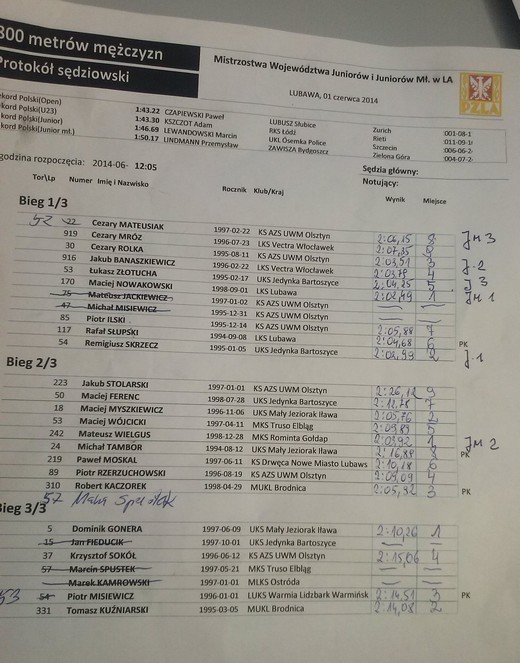 LUBAWA. W niedzielę, 1 czerwca w Lubawie odbyły się Mistrzostwa Województwa Warmińsko-Mazurskiego w Lekkoatletyce. W zawodach mogli startować tylko zawodnicy posiadający licencję Polskiego Związku Lekkiej Atletyki, więc startowała na nich cała czołówka lekkoatletów z naszego województwa. W biegu na 800 metrów znakomite 2 miejsce zajął Mateusz Wielgus. Uzyskał czas 2:03:92.