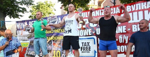 GOŁDAP. Ostatnią imprezą w ramach tegorocznych Dni Gołdapi były amatorskie zawody siłaczy „Strongman 2014", rozgrywane w kategorii open. Wczoraj w centrum miasta o godz. 15.00 zgromadziły się tłumy gołdapian, gości i turystów. Do rywalizacji przystąpiło dziesięciu siłaczy, którzy rywalizowali w pięciu widowiskowych konkurencjach siłowych m.in.: „opona - kowadło" - kwalifikacje, „zegar", „tir", „spacer farmera", „martwy ciąg". Odbyły się także konkurencje dla publiczności. Najlepszym siłaczem zawodów został Grzegorz Skowroński, drugie miejsce wywalczył Marcin Skowroński, miejsce trzecie przypadło Marcinowi Kacnerskiemu. Wszyscy zawodnicy otrzymali bony pieniężne, zwycięska trójka dodatkowo puchary i nagrody rzeczowe. Organizatorem zawodów był OSiR w Gołdapi.