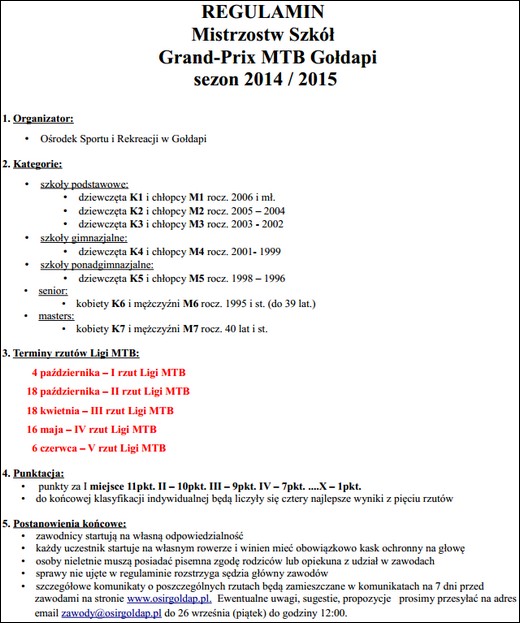 GOŁDAP. 18 października w lesie Kumiecie odbędzie się drugi rzut ligi MTB. Zapraszamy do uczestnictwa w zawodach. Początek o godzinie 10.00.