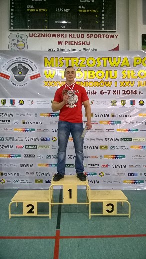 PIEŃSK. W dniach 6-7 grudnia w hali widowiskowo-sportowej w Pieńsku odbyły się Mistrzostwa Polski w Trójboju Siłowym. Sukces odniósł funkcjonariusz z Komendy Powiatowej PSP w Gołdapi str. Wojciech Barszczewski (dźwiganie w przysiadzie 250kg, wyciskanie sztangi leżąc 152,5kg, martwy ciąg 250kg, co łącznie dało 652,5kg ). Zdobył tytuł wicemistrza Polski w grupie wiekowej junior oraz III miejsce w grupie seniorów w kategorii wagowej do 83 kg. Do startu zgłosiło się 96 zawodniczek i zawodników z 20 klubów z całej Polski, którzy walczyli o tytuły mistrzowskie na rok 2014. Zawody w Pieńsku były także eliminacją do mistrzostw świata i Europy w tej dyscyplinie sportu . Na pomoście można było zobaczyć aktualnych mistrzów i rekordzistów Polski oraz medalistów mistrzostw Europy i świata. Gratulujemy i życzymy dalszych sukcesów.