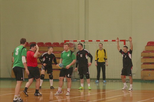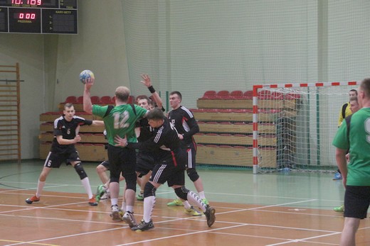 Początek pierwszej połowy był bardzo wyrównany, jednak skuteczna gra naszych zawodników, przemyślane decyzje i dobra gra w obronie spowodowały, że gospodarze schodzili na przerwę z 3 punktową przewagą, wygrywając 16:13. W drugiej połowie pojawiło się dużo błędów w obu drużynach. W przeciwieństwie do pierwszej części spotkania zawodnicy otrzymali wiele kar dwuminutowych. Gra była bardzo niespokojna. Jaćwingowie zachowali jednak zimną krew, wygrywając całe spotkanie 26:24.