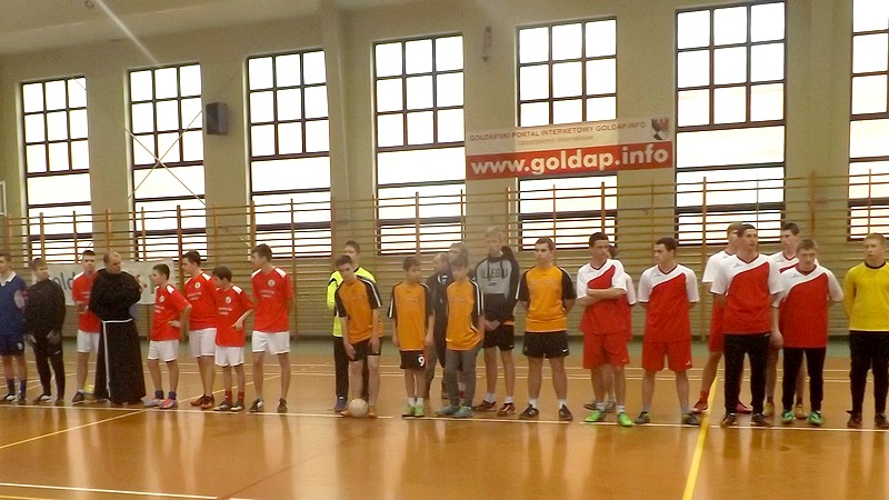 GOŁDAP. XIV Turniej Piłki Nożnej Lektorów o Puchar Biskupa Ełckiego Jerzego Mazura odbył się dziś w hali OSIR w Gołdapi. Zagrało w nim 10 drużyn z diecezji ełckiej. Zawodników powitali burmistrz Tomasz Luto oraz sekretarz biskupa ks. Sławomir Kudrawiec. Drużyny zostały podzielone na 2 grupy, które grały systemem każdy z każdym.