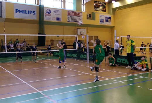 45 drużyn „dwójek" chłopców rozgrywało swój turniej aż w piętnastu grupach. Pierwsza z tych drużyn - UKS „Trójka" Gołdap 1 w składzie: Kamil Jabłoński, Tymoteusz Walc oraz Piotr Górski już na początku musiała przełknąć gorzką pigułkę. Losowanie grup nie okazało się łaskawe dla gołdapian, bowiem w ich grupie znaleźli się papierowi faworyci z Olsztyna. Gołdapianie najpierw gładko ograli 2:0 UKS Koszałek Opałek Węgorzewo, ale później nie znaleźli recepty na zespół Kurianvolley Olsztyn, przegrywając 0:2. W dalszej części (1/16) podrażnieni porażką rozbili 2:0 SP19 IKS Atak Elbląg 8 i w 1/8 2:0 SP7 Bartoszyce 2. W ćwierćfinale pokonali 2:0 Zwierzewo. Półfinałowym przeciwnikiem była znów ekipa z Olsztyna. Gołdapianie do połowy setów toczyli wyrównaną walkę. Niestety zmęczenie i kontuzja jednego z zawodników uniemożliwiły grę na najwyższym poziomie co w konsekwencji złożyło się na porażkę. W meczu o trzecie miejsce zespół „dwójek" UKS Trójka 1 wzniósł się na wyżyny i pokonał 2:1 (15:11, 17:19, 11:7) Szkołę Mistrzostwa Sportowego Ostróda 1. Trzecie miejsce (13 punktów) doskonale rokuje na przyszłość. Wiele serca i potu na parkiecie pozostawili trzecioklasiści: Oskar Kozłowski, Alan Budziejko i Michał Ostrowski (drugoklasista), oraz Dominik Wawrukiewicz i Oskar Kozłowski, którzy w walce na styku ogromnych emocji stworzyli ładne dla oka widowiska, ale odpadli z dalszej rywalizacji.
