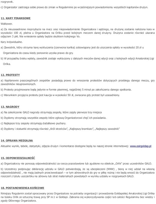 GOŁDAP. Wkrótce w Gołdapi wystartuje Gołdapska Amatorska Liga Orlika. Chętne do gry drużyny powinny zgłaszać się do organizatora pisząc na adres zawody@osirgoldap.pl. Liczba zespołów jest ograniczona do ośmiu, decyduje kolejność zgłoszeń.