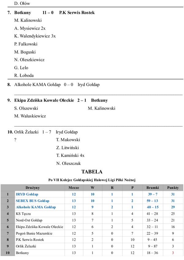GOŁDAP. Już tylko trzy kolejki zostały do końca rozgrywek Gołdapskiej Halowej Ligi Piłki Nożnej o puchar właściciela RBB Jaja z Mazur. W minioną niedzielę rozegrana została siódma runda spotkań. Nie brakowało ładnych bramek i emocji.