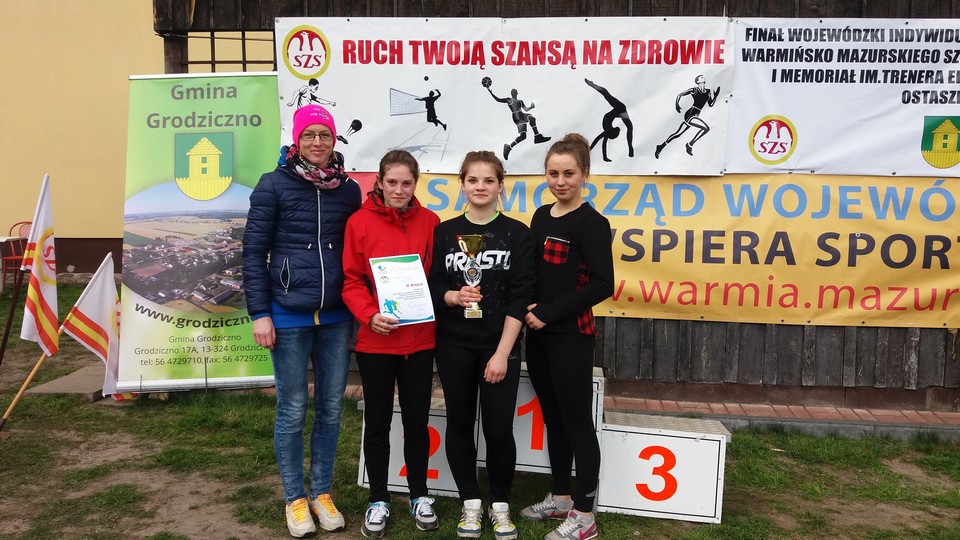 OSTASZEWO. 22 kwietnia w Ostaszewie koło Nowego Miasta Lubawskiego odbyły się Mistrzostwa Województwa Warmińsko-Mazurskiego Szkolnego Związku Sportowego w Indywidualno-Drużynowych Biegach Przełajowych. Bardzo dobrze wypadły zawodniczki z Zespołu Szkół Zawodowych w Gołdapi, które drużynowo wywalczyły 3 miejsce wśród szkół ponadgimnazjalnych. Indywidualnie najlepiej pobiegła Anita Słowikowska zajmując 6 miejsce. Niedaleko za nią na 8 miejscu przybiegła Sandra Kalwajtys. Tuż za nią na 9 miejscu była Paulina Chmielewska. Dominika Zarzecka przybiegła 15, a na 16 miejscu uplasowała się Milena Smokowska. Opiekunem uczennic była Emilia Wołyniec.