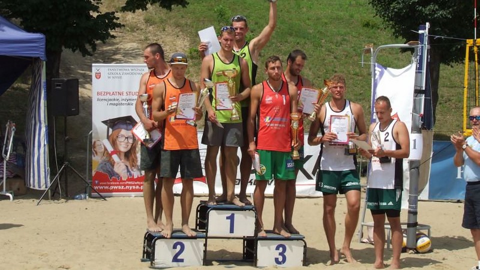 NYSA. W dniach 17-19 czerwca na plaży Nyskiego Ośrodka Rekreacji odbyły się eliminacje do Mistrzostw Polski Mężczyzn w Siatkówce Plażowej im. Wiesława Szabata. Do turnieju zgłosiły się 22 pary z całej Polski (m. in. Gdyni, Wrocławia, Sosnowca, Olsztyna, Łodzi, Kraśnika, Kędzierzyna Koźla, Radomia i Gołdapi). W piątek rozegrano eliminacje, w których wystartowało 14 par. Do sobotniego turnieju głównego awansowało 8 drużyn, które spotkały się z zespołami rozstawionymi, niebiorącymi udziału w piątkowych rozgrywkach. Para gołdapsko-malborska Adrian Białecki / Bartosz Pietruczuk przeszła przez eliminacje jak burza. Turniej główny również układał się po myśli tej pary. Siatkarze odnieśli kolejno trzy zwycięstwa pokonując 2:0 parę Adam Andrys / Roman Andrys, potem 2:1 parę Piotr Łukasik / Bartosz Mariański oraz duet Sebastian Kaczmarek / Piotr Janiak 2:0 (25:23, 25:23). W półfinale imprezy ograli znów parę Piotr Łukasik / Bartosz Mariański 2:1. W finale nie sprostali znanej parze Sebastian Kaczmarek / Piotr Janiak, przegrali 0:2 i zajęli wyśmienite drugie miejsce w tej śmietance siatkarskiej, odnotowując życiowy sukces. Na ich konto wpłynęło po 135 punktów do rankingu i praktycznie ustawia drużynę na finał Polski. Nagrody pieniężne, puchary oraz pamiątkowe dyplomy wręczali: Iwona Szabat – żona śp. Wiesława Szabata, Piotr Bobak – zastępca burmistrza Nysy oraz Mirosław Aranowicz – prezes zarządu Nyskiego Ośrodka Rekreacji. Nagrodę MVP eliminacji otrzymał Piotr Janiak.