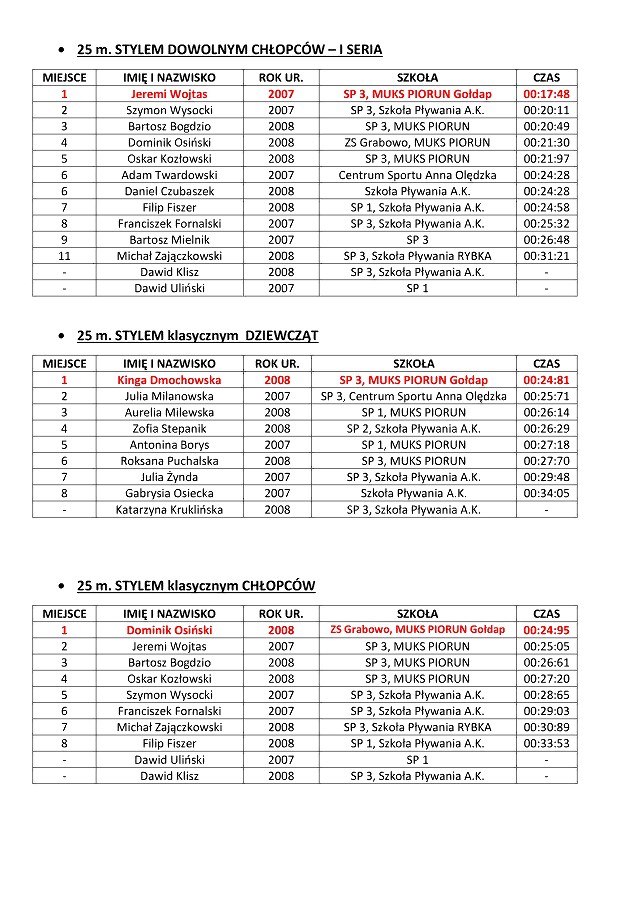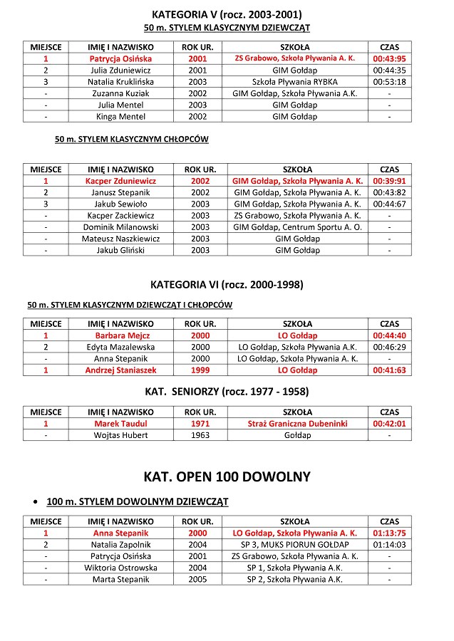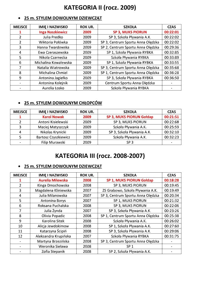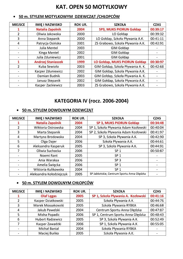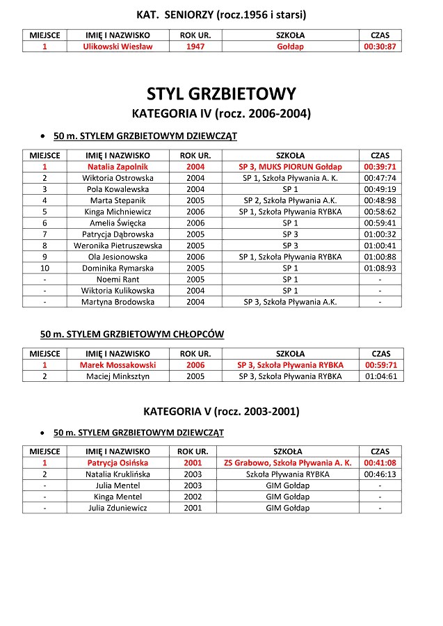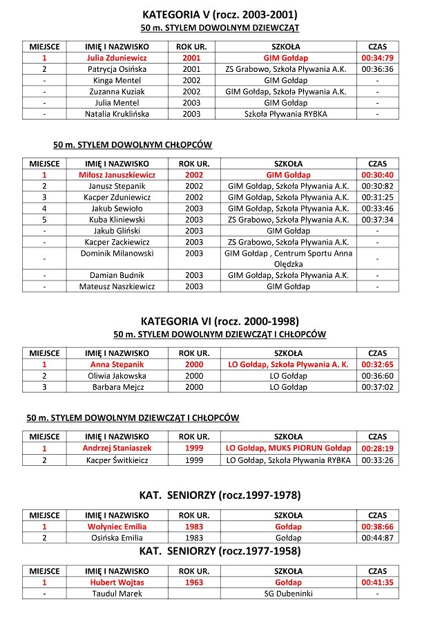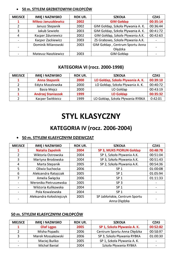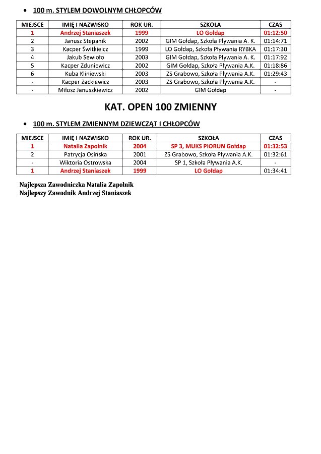GOŁDAP. W sobotę w Kompleksie Sportowo-Rekreacyjnym odbyły się XI Letnie Mistrzostwa Gołdapi w Pływaniu. Wystartowały 93 osoby z prawie 130, które się zgłosiły do udziału. Uczestnicy rywalizowali różnymi stylami na dystansach od 25 do 100 metrów. Najlepszymi zawodnikami mistrzostw, podobnie jak podczas poprzednich letnich mistrzostw, zostali Andrzej Staniaszek i Natalia Zapolnik. Zawody prowadził dyrektor OSiR Wojciech Cemel.