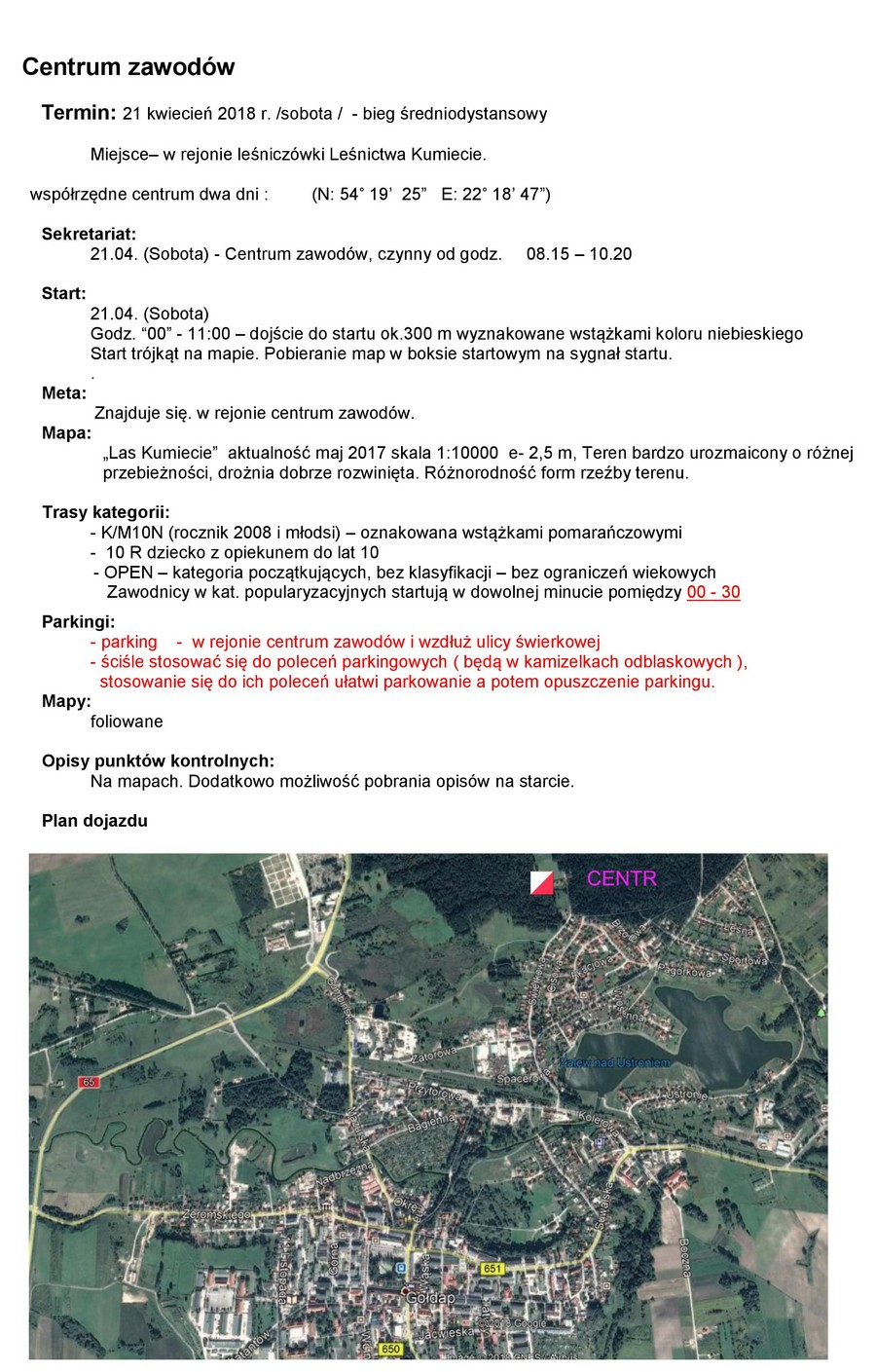 GOŁDAP. 21 kwietnia na terenie Lasu Kumiecie odbędą się I Otwarte Mistrzostwa Gołdapi w Biegu na Orientację, organizowane przez Sekcję Wychowania Fizycznego i Sportu 15 Pułku Przeciwlotniczego. W ramach zawodów rozegrana zostanie druga runda Mistrzostw Warmii i Mazur w Biegach na Orientację. Rozpoczęcie tej imprezy sportowej zaplanowano o godzinie 11.00. Biuro zawodów rozpocznie pracę od godziny 8.15.