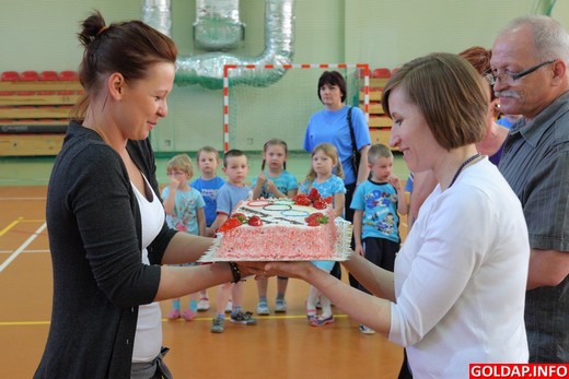 Rozegrano też bieg indywidualny na jedna długość hali. Wśród trzylatków najszybszy był Patryk Godlewski, wśród czterolatków Amelia Święcka, a pięciolatków Michał Kamiński. Zwycięzcy rywalizacji grupowej otrzymali puchary i dyplomy, zwycięzcy biegów indywidualnych nagrody. Na ręce dyrektor przedszkola Marzanny Wardziejewskiej organizatorka i pomysłodawczyni olimpiady Joanna Kozłowska wręczyła symboliczny czek na sumę 1600zł, pozyskanąod sponsorów. Dyrektor w ramach podziękowań odwdzięczyła się pracownikom kompleksu jubileuszowym tortem.